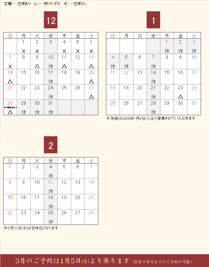 「茶房 半兵衛」のご予約状況(※12/6更新)